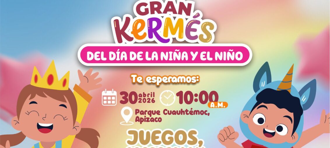 Con el objetivo de celebrar y reconocer la alegría de la niñez apizaquense, el Gobierno Municipal de Apizaco que encabeza el presidente Javier Rivera Bonilla, llevará a cabo una gran kermés con motivo del Día de la Niña y del Niño, el próximo 30 de abril en la explanada del parque Cuauhtémoc.