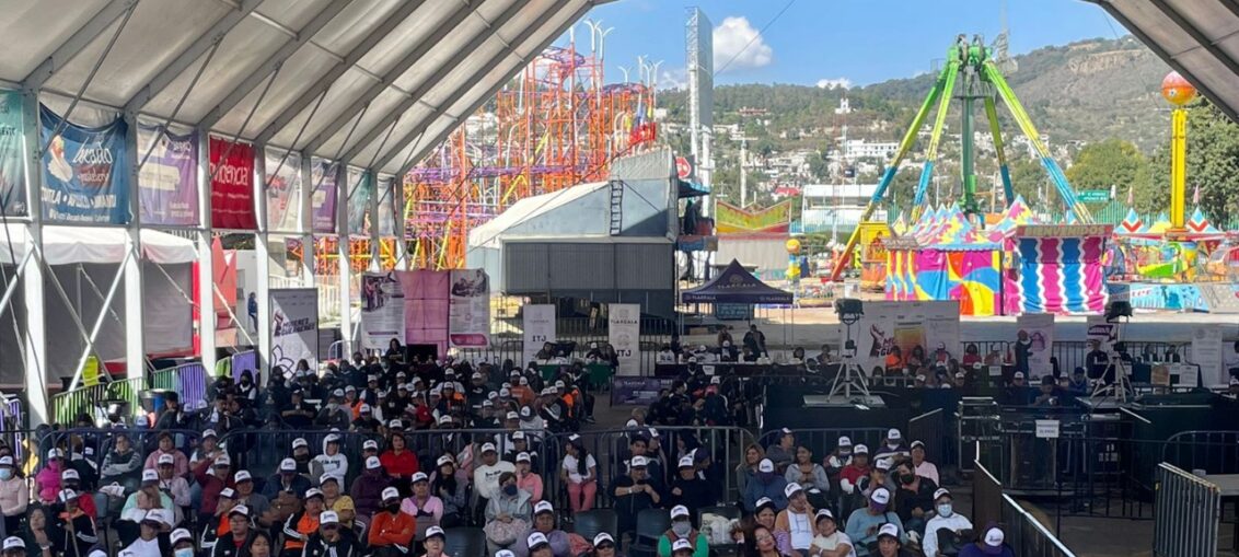 Teniendo como sede el Teatro del Pueblo de la “Gran Feria de Tlaxcala 2022”, las presentes participaron activamente en cada una de las dinámicas de este programa dirigido al sector femenil de la entidad y así lograr disminuir, prevenir y enfrentar alguna situación de violencia a partir de la actividad física.