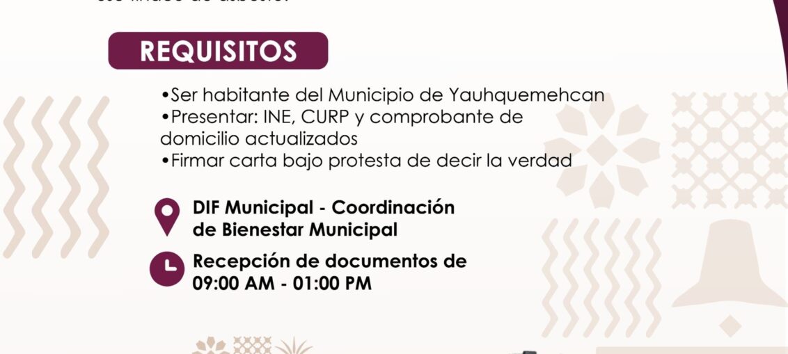 El Ayuntamiento de Yauhquemehcan, a través de la Coordinación de Bienestar, invita a los habitantes del municipio a participar en el Programa “Agua para tu Vivienda”. Este programa está dirigido a personas que: