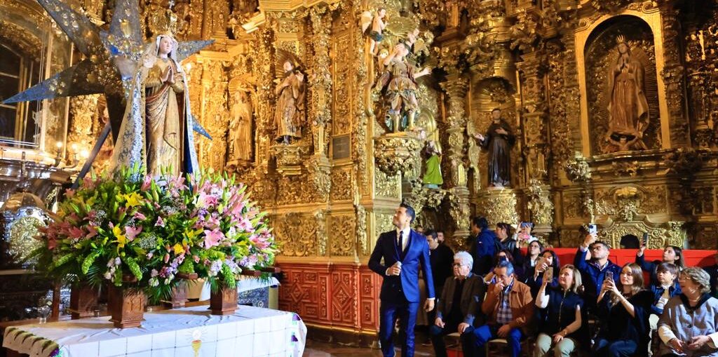 La titular del Ejecutivo local y el cantautor saludaron y se tomaron fotografías con las y los fieles católicos, que con ansias esperaban la salida de la Virgen de la Basílica de Ocotlán para acompañarla en su recorrido por las principales calles de la ciudad capital.