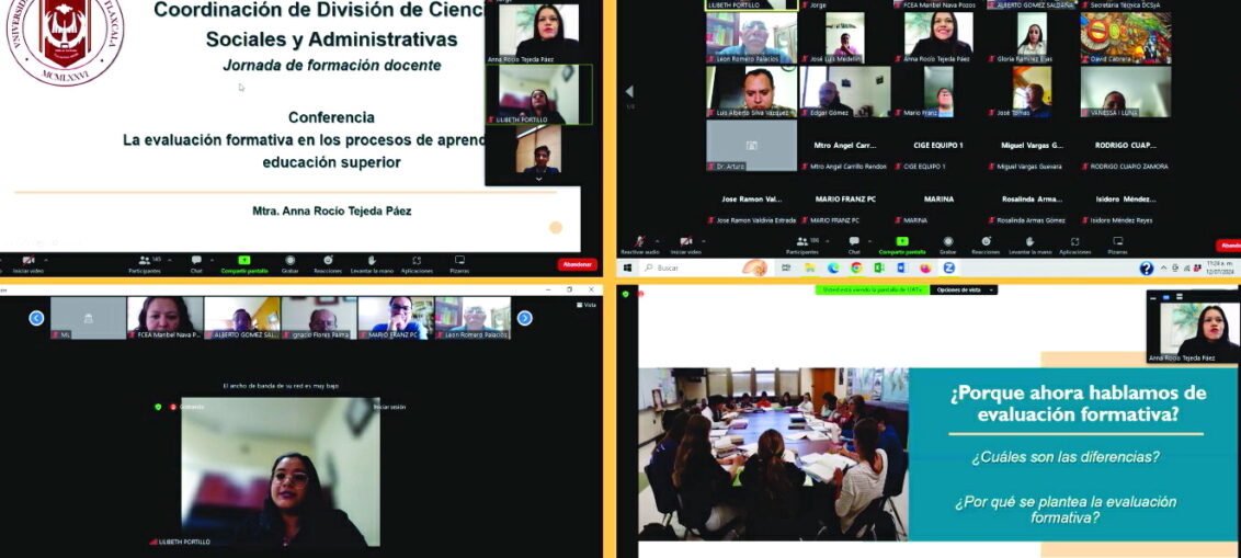 Con el objetivo de promover la comprensión y valoración del Modelo Humanista Integrador basado en Capacidades (MHIC) entre la comunidad académica, la Universidad Autónoma de Tlaxcala (UATx), a través de la Coordinación de la División de Ciencias Sociales y Administrativas que dirige la Doctora Lilibeth Portillo Rumbo, llevó a cabo la conferencia virtual “Evaluación formativa en la educación superior”, a cargo de la Maestra Anna Roció Tejeda Páez, catedrática del Centro de Investigación Educativa (CIE), la cual estuvo dirigida a 187 docentes de las Facultades y Unidades Académicas Multidisciplinarias que integran esta área del conocimiento.