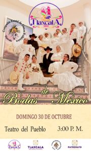 “Bodas de México” forma parte de la oferta artística y cultural que la Gran Feria de Tlaxcala acerca gratuitamente al público a través del foro del Teatro del Pueblo, por lo que se trata de una presentación de gran calidad para toda la familia sin ningún costo.
