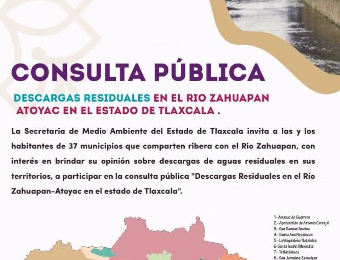 La Secretaría de Medio Ambiente (SMA) invita a la población de los 37 municipios por los que pasa el Río Zahuapan a participar en la Consulta Pública Ciudadana sobre la situación ambiental del afluente.
