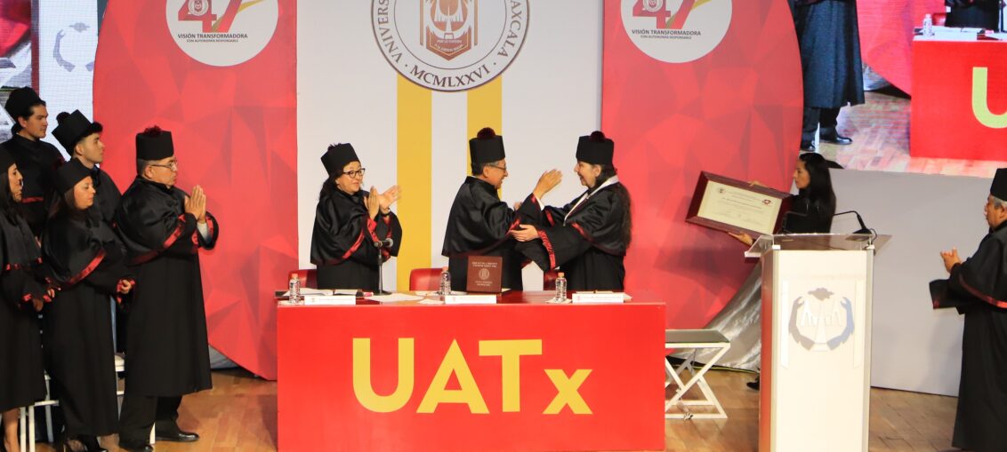 El Doctor Serafín Ortiz Ortiz, Rector de la Universidad Autónoma de Tlaxcala (UATx), encabezó la sesión pública y solemne del Honorable Consejo Universitario conmemorativa al 47 aniversario de su fundación, en la que se impuso el grado de Doctor Honoris Causa a María Marcela Lagarde y de los Ríos, por sus aportaciones al fortalecimiento de la cultura feminista, la equidad de género, al abatimiento de la violencia en cualquiera de sus formas y por ser quien constituyera el término de feminicidio en el país.