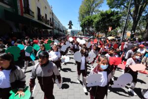 Minutos más tarde inició el desfile por las principales calles de la capital tlaxcalteca, en el que participaron elementos de la Secretaría de la Defensa Nacional (Sedena), Guardia Nacional (GN), Fuerza Aérea Mexicana, la Secretaría de Marina, Secretaría de Seguridad Ciudadana (SSC); alumnos, docentes, dependencias estatales, así como charros y escaramuzas.