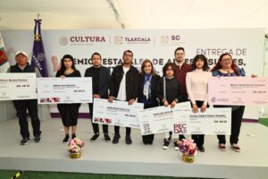 La gobernadora Lorena Cuéllar Cisneros encabezó la premiación al talento, dedicación y trayectoria de los artistas tlaxcaltecas que participaron en las convocatorias del Programa de Acciones Culturales Multilingües y Comunitarias (Pacmyc), Programa de Estímulo a la Creación y Desarrollo Artístico (Pecda) y Premios Estatales de Literatura y Artes Visuales 2022.