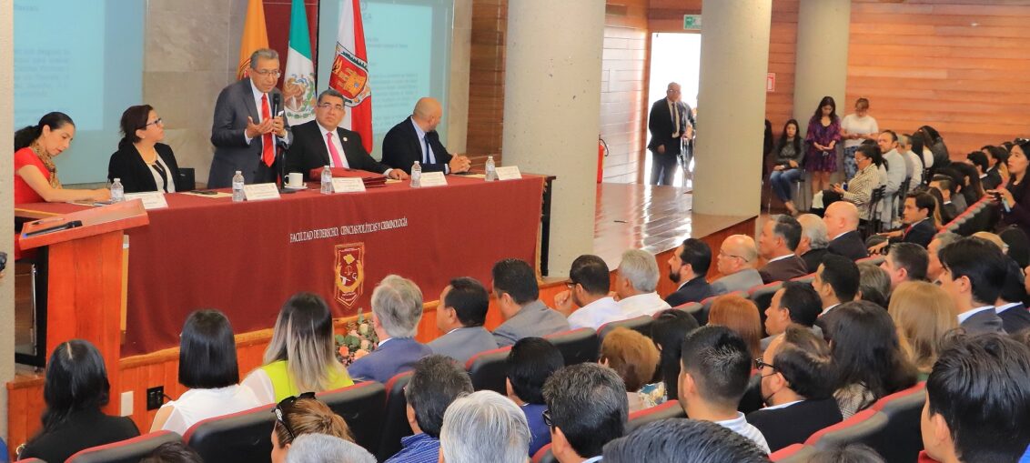 En tanto, el Maestro Dante Morales Cruz, Director de la Facultad de Derecho, Ciencias Políticas y Criminología, apuntó que ésta constituye un pilar muy importante, sobre todo la Licenciatura en Derecho en la vida institucional de la máxima Casa de Estudios en la entidad, ya que se ha insertado en la sociedad para contribuir al impulso de la educación superior en materia de ciencia e investigación jurídica.