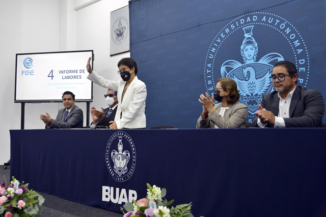 Asimismo, la directora de la FCE dio a conocer la impartición de cursos de capacitación docente, la puesta en marcha de oficinas virtuales para la atención estudiantil, el incremento en el número de becas, la inversión de fondos para la asistencia a congresos y cursos, y la realización de eventos deportivos.
