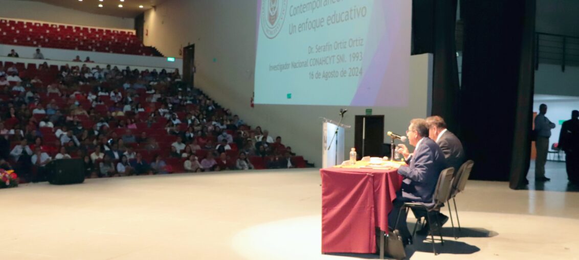 Para seguir con el fortalecimiento de los procesos de enseñanza y aprendizaje, la Universidad Autónoma de Tlaxcala (UATx) dio continuidad a las actividades de la jornada de formación y actualización docente del Ciclo Otoño 2024, con la conferencia intitulada <<Humanismo integrador contemporáneo: un enfoque educativo>>, que dictó el Doctor Serafín Ortiz Ortiz, Rector de la máxima Casa de Estudios e investigador nacional, efectuada en el Centro Cultural Universitario (CCU)
