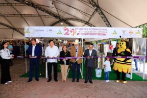 Previamente, las autoridades cortaron el listón inaugural de la Expo Apícola en la que participan proveedores de 45 empresas de todo el país, con equipo y tecnología de punta, además se comercializa miel y productos derivados.