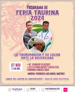 El gobierno del estado, a través del Instituto Tlaxcalteca de Desarrollo Taurino (ITDT), que dio a conocer el programa completo de eventos culturales y taurinos, cuyas actividades, aunadas a las Corridas de “Tlaxcala, la Feria de Ferias 2024”, ofrecerán una extraordinaria oferta para la gran afición de la capital llena de tradición, así como para el turismo que la visita.