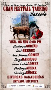 Cabe mencionar que el 12 de noviembre, a las 16:00 horas, se efectuará el Tentadero por la Mujer, a cargo de diversas ganaderías tlaxcaltecas.