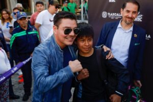 Con ellos, “El Travieso” confirmó que Val’Quirico es un lugar espectacular y que Tlaxcala brillará a nivel mundial este 27 de julio. Además, aprovechó la ocasión para decir a quienes practican box “que le echen muchas ganas, que sueñen en grande, y que luchen por alcanzar lo que más desean”.