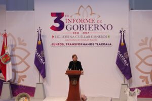 La gobernadora Lorena Cuéllar Cisneros rindió su Tercer Informe de Gobierno en el Centro Cultural Universitario (CCU) de Tlaxcala, en donde presentó los logros y compromisos cumplidos a tres años de su gestión, así como cifras históricas en rubros como salud, educación y bienestar.