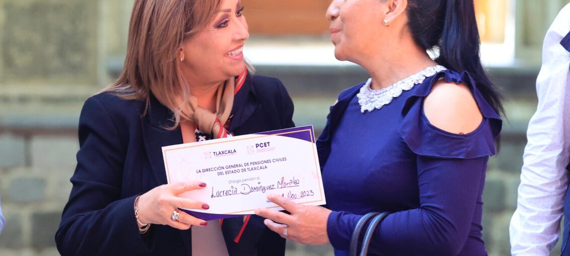 La titular del Ejecutivo local, Lorena Cuéllar Cisneros, acompañada de la directora general de Pensiones Civiles del Estado de Tlaxcala (PCET), Radahid Hernández López, entregó 60 resolutivos de pensiones, con lo que se concluye al 100 por ciento la entrega de pagos rezagados por jubilación, vejez y viudez.