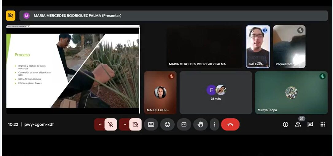 Explicó el proceso creativo, desde la recolección de señales eléctricas de las plantas y su conversión a formato MIDI, hasta el uso de sistemas modulares y la edición final de las composiciones. La sesión fue moderada por la Doctora María Mercedes Rodríguez Palma, Responsable Técnica del JET.