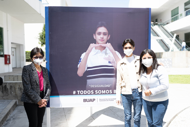 Para visibilizar a la comunidad de personas sordas que estudian en la institución, la Rectora Lilia Cedillo Ramírez inauguró la exposición “Todos somos BUAP”, en el andador del Complejo Cultural Universitario, una propuesta de María Guadalupe Conde Cuatzo, alumna del Colegio de Diseño Gráfico, de la Facultad de Arquitectura. “Queremos ser y ver una universidad incluyente. Una universidad donde todos tengamos un espacio, donde todos nos sintamos considerados. Todos somos BUAP”, expresó.