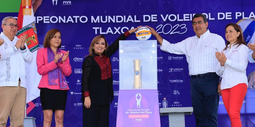 La gobernadora de Tlaxcala, Lorena Cuéllar Cisneros y su homólogo de Puebla, Sergio Salomón Céspedes Peregrina, develaron el trofeo que será entregado a los finalistas del Mundial de Voleibol de Playa Tlaxcala 2023, a realizarse del 5 al 15 de octubre.