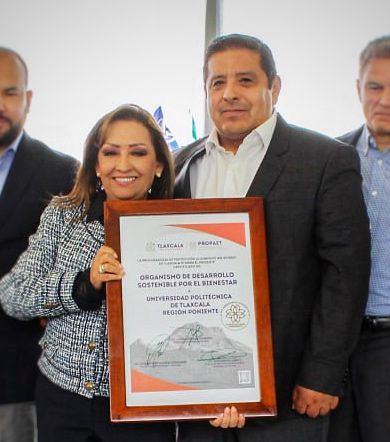 El rector de la Universidad Politécnica de Tlaxcala Región Poniente (Uptrep), Víctor Castro López recibió, de manos de la gobernadora Lorena Cuéllar Cisneros, el certificado que acredita a la institución educativa de nivel superior como un ente que realiza acciones a favor del entorno natural.