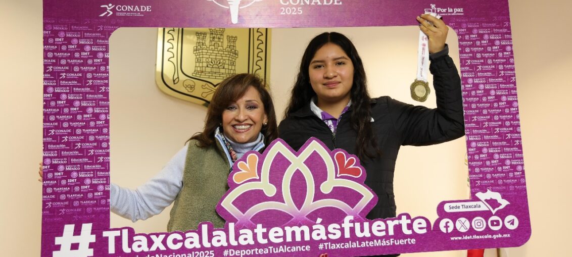 La gobernadora Lorena Cuéllar Cisneros reconoció, por su esfuerzo y dedicación, a Barbara Natalia Padilla Rugeiro, quien obtuvo medalla de oro en las competencias de judo durante la Olimpiada Nacional CONADE 2025 que se realizaron en el Centro de Convenciones de Tlaxcala, y anunció que la joven representará a México en los Juegos Panamericanos Junior, que este año se realizarán en agosto en Paraguay.