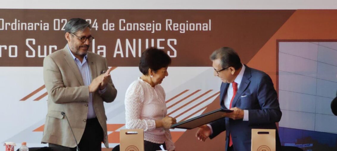 El Doctor Serafín Ortiz Ortiz, Rector de la Universidad Autónoma de Tlaxcala (UATx), recibió un reconocimiento que le entregó la Doctora María Lilia Cedillo Ramírez, Rectora de la Benemérita Universidad Autónoma de Puebla (BUAP), por su desempeño en la Presidencia del Consejo Regional Centro-Sur de la Asociación Nacional de Universidades e Instituciones de Educación Superior (ANUIES) a lo largo de cuatro años, en representación de los rectores que integran este organismo, en el marco de la Sesión Ordinaria 02.2024 del Consejo Regional Centro Sur de ANUIES que también presidió el Doctor Luis Armando González Placencia, Secretario General Ejecutivo de la ANUIES.