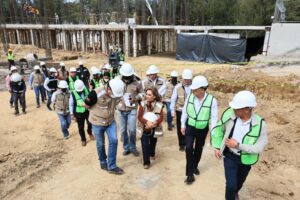 Durante el recorrido, el residente de la obra, Fernando Reynoso Benítez explicó que los trabajos comprenden cinco edificios principales: monitoreo, de filtro, de servicios, el auditorio y casetas de seguridad, siendo el primero el que tiene un avance del 50 por ciento en su construcción, este “contempla doble altura constituida por planta baja y primer nivel, la cual albergará todo el centro de tecnología a utilizar, además del área para operadores, centros de llamadas y salas de juntas y de emergencias”, indicó.