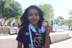 Al respecto, la medallista mencionó: “me siento feliz y satisfecha por el esfuerzo que hice; le dedico este esfuerzo a mis papás y a todas las personas que me apoyaron y creyeron en mi”.