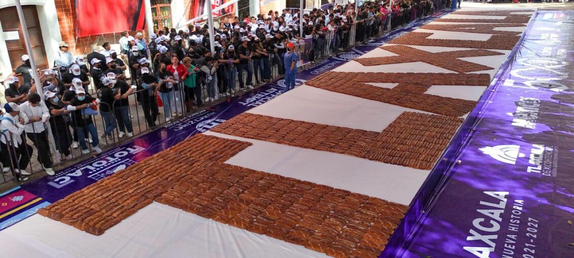 Tlaxcala logró su tercer Récord Guinness con la elaboración del pan de fiesta más grande del mundo, conformado por 2 mil 581 piezas que unidas dieron forma a la palabra “Tlaxcala”, logro que fue resultado de la suma de esfuerzos de artesanos y tahoneros de los municipios de San Juan Totolac y San Juan Huactzinco, quienes preservan con orgullo una tradición convertida en símbolo de identidad y patrimonio gastronómico.