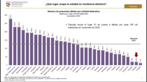 Las cifras de noviembre presentadas este 20 de diciembre también indican que Tlaxcala se ubica en el segundo lugar nacional con la menor incidencia por cada 100 mil habitantes, solo por debajo de Yucatán y en el tercer lugar se encuentra Chiapas.