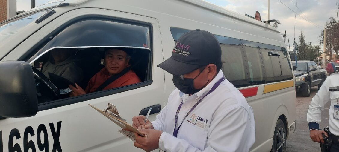 La Secretaría de Movilidad y Transporte (SMyT) refuerza la supervisión de las unidades de transporte público, a efecto de que los operadores cumplan con las disposiciones de disminuir su aforo al 80 por ciento de capacidad, así como implementar el uso obligatorio y correcto del cubrebocas para evitar la propagación del virus Covid-19.