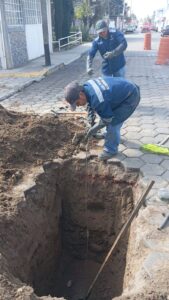 La Dirección de Agua Potable y Alcantarillado de Yauhquemehcan realizó trabajos de reparación en la red de drenaje de la calle Camino Real Sur en la comunidad de Santa Úrsula Zimatepec.